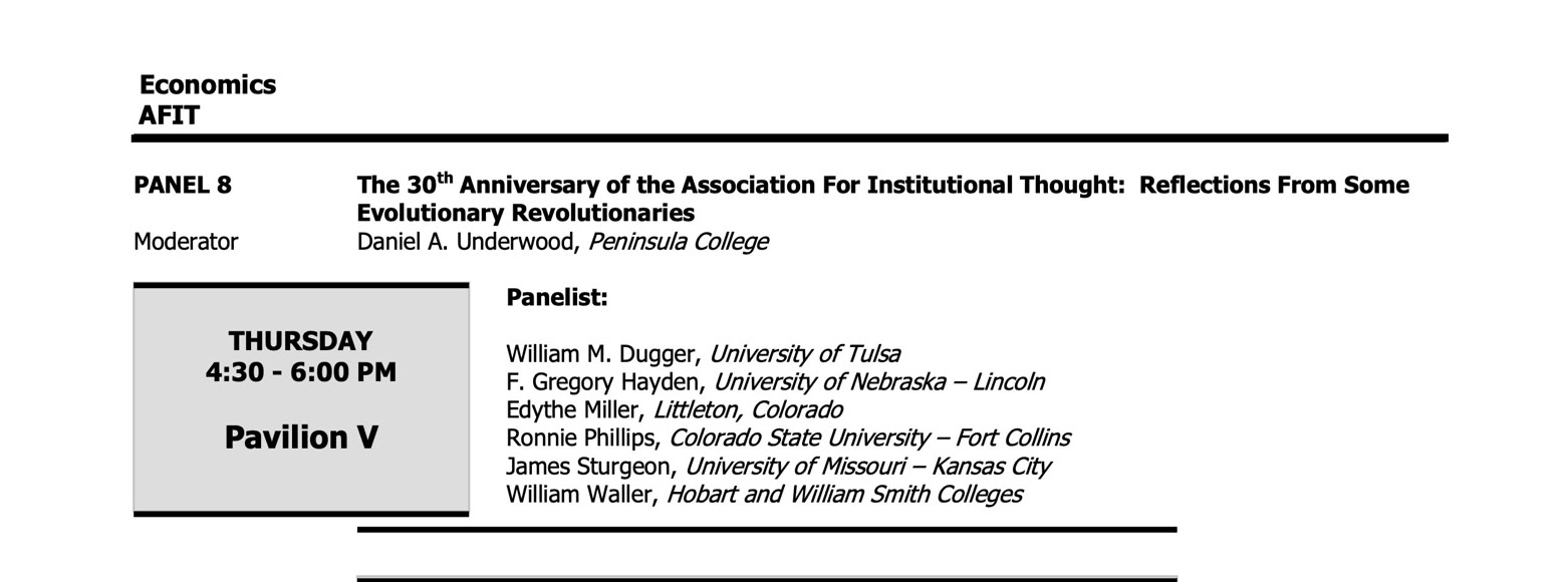 Reflections on the founding of afit. Association for Institutional Thought/WSSA, Albuquerque, NM, April 2009.