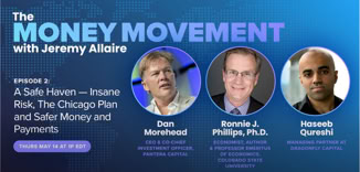 The Money Movement, hosted by Jeremy Allaire. Episode 2 - a safe haven - insane risk, the chicago plan and safer money and payments. May 2020.